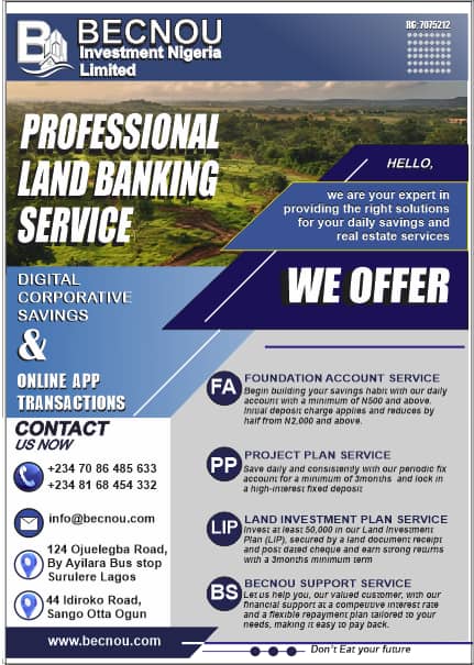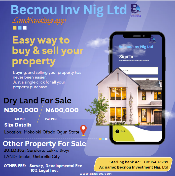 Becnou is a real estate company we deal with selling of land and properties also we deal with saving of money and supporting business for growth.